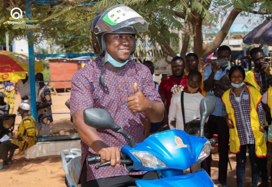 Le leader de la téléphonie mobile et fixe au Togo, Togocom a primé lundi 10 janvier 2022 à Dapaong dans la région des Savanes (à 650 km au nord de Lomé) Dombi Essossinam qui a réalisé la plus grande transaction T-money dans le cadre du challenge point de vente T-money. Il a remporté un gros lot constitué d’une moto neuve.