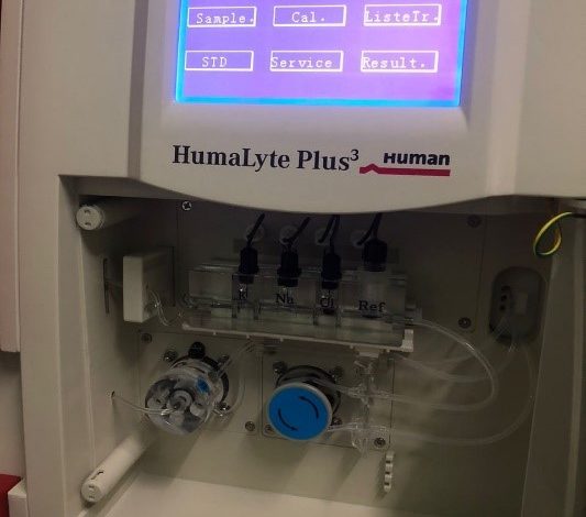 L’analyseur d’électrolytes est un instrument qui détecte le potassium, le sodium, la chlorure, et le lithium dans le sang. Les concentrations permettent d’apprécier l’équilibre hydro électrolytique, de connaître l’origine d’un déséquilibre biologique (troubles rénaux, intestinaux, cardiovasculaires…) et éventuellement de le corriger